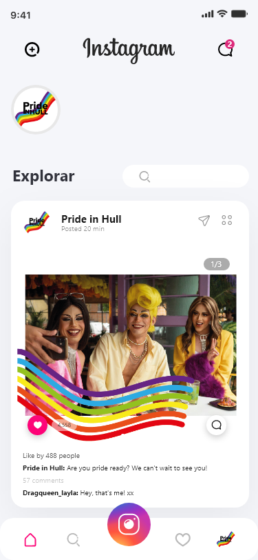 To further develop the redesign of their social media platforms, the artistic rainbow border could be created as a photo filter which users and event attenders could use to show their experience at the event, this would also create more profile interaction.