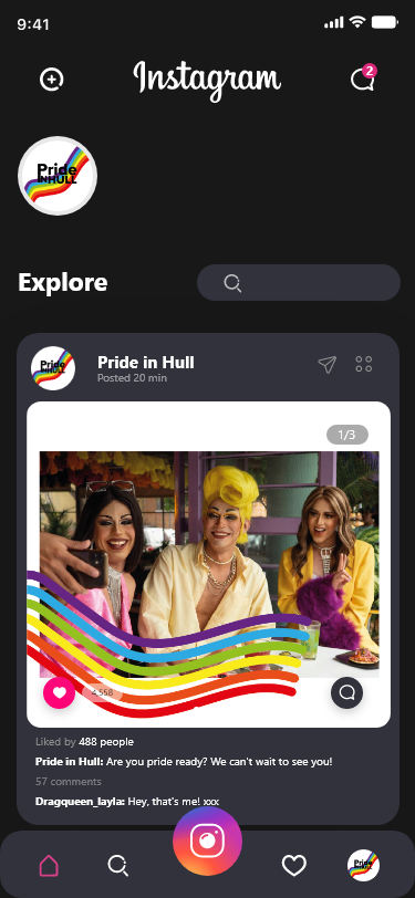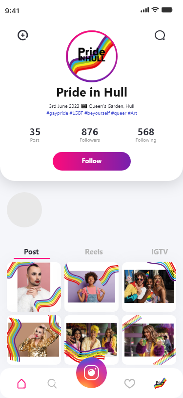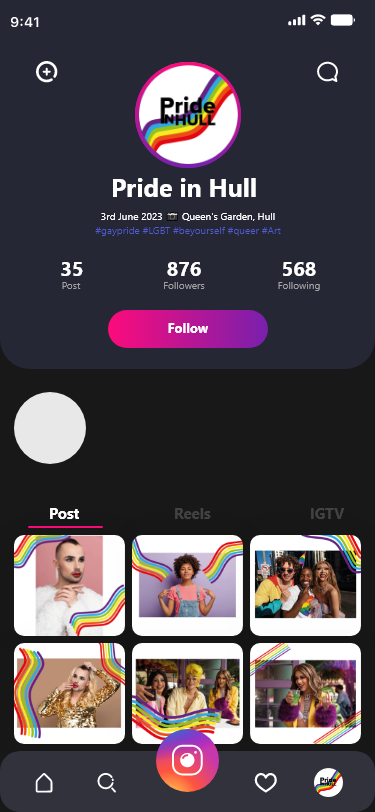 Figure 3Figure 4Figure 5Figure 6Redesign of the Pride in Hull Instagram page, showing light and dark mode.