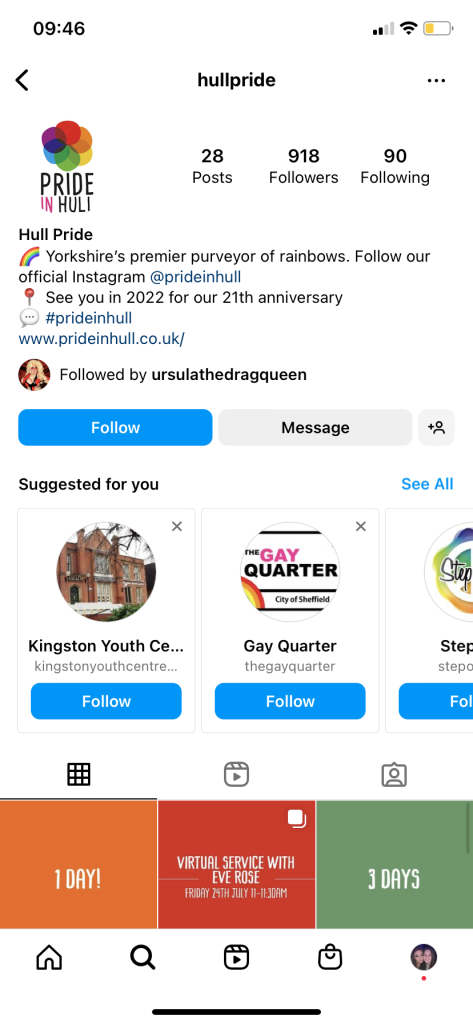 As you can see, their Instagram page has become very quiet. Pride in Hull is an event that occurs every year so posting on their social media’s actively can increase the interest of their event.