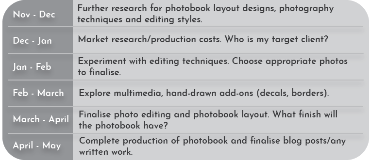 To include the graphic design aspect to this photobook, I will be designing the pages in a grunge-like manner. I aim to include text, handwritten words or just simple decals to some pages, making it niche.
