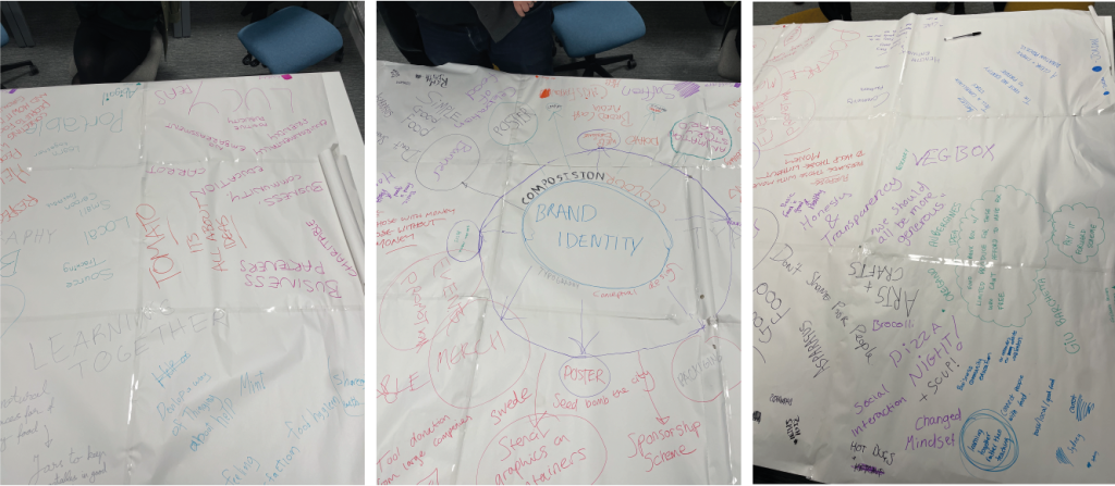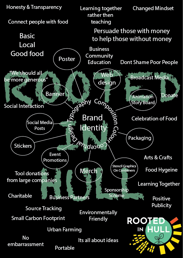 After receiving an email from Rooted in Hull’s CEO Adrian Fisher, stating that their new pizza chef, Sherard, needed some help towards a new company name, logo design, flyer design and pizza packaging, groups of 2 were formed to brainstorm some quick names and logo designs following Sherard’s brief. One design was to include a hammer and sickle or something related and the other design did not have to include the hammer and sickle.