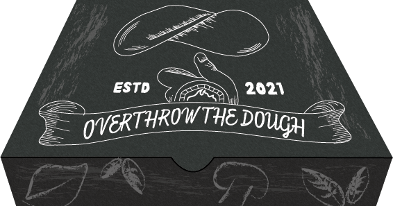 Overthrow the Dough was the chosen logo to enhance even further, this enhanced version is a completely different style. Moving away from the youthfulness of the first designs, this logo is now more detailed and now looks more like a small, family-owned business. Texture has been added using cross-hatching techniques. With this new logo, the whole layout of the flyer has been completely changed, the new and improved flyer design now includes a chalkboard-like background, with illustrations of common ingredients, created using a chalk paint tool within Adobe Illustrator. The text has remained the same but now, with a funkier chalk-like font. Original photos of Sherard’s pizza have been included to give the audience an insight to how the pizza looks.